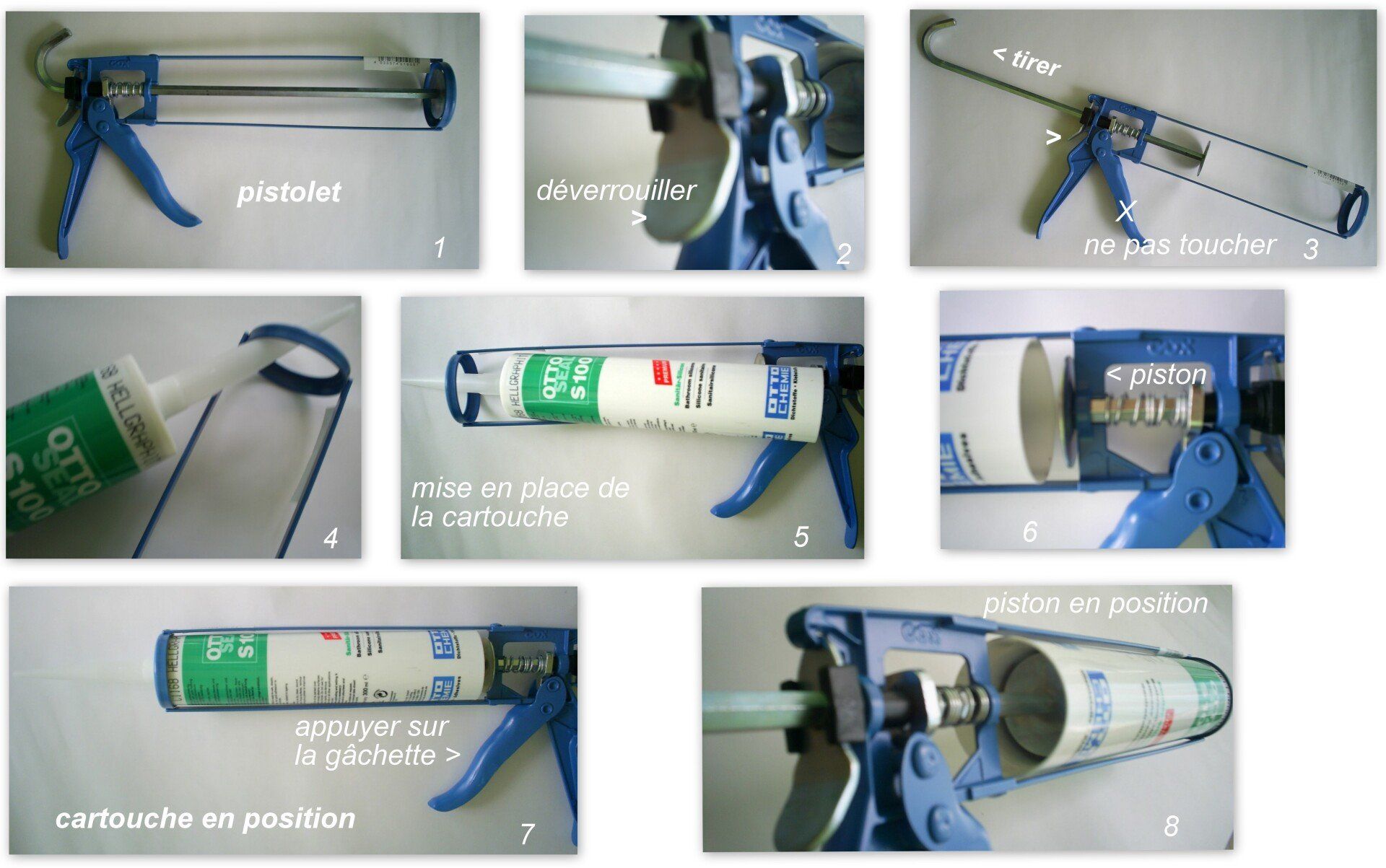 - Utilisez un pistolet à main pour les cartouches de 300/310ml (voir ci-dessous).
